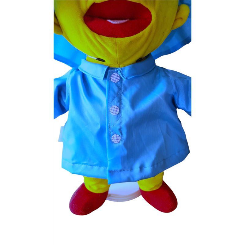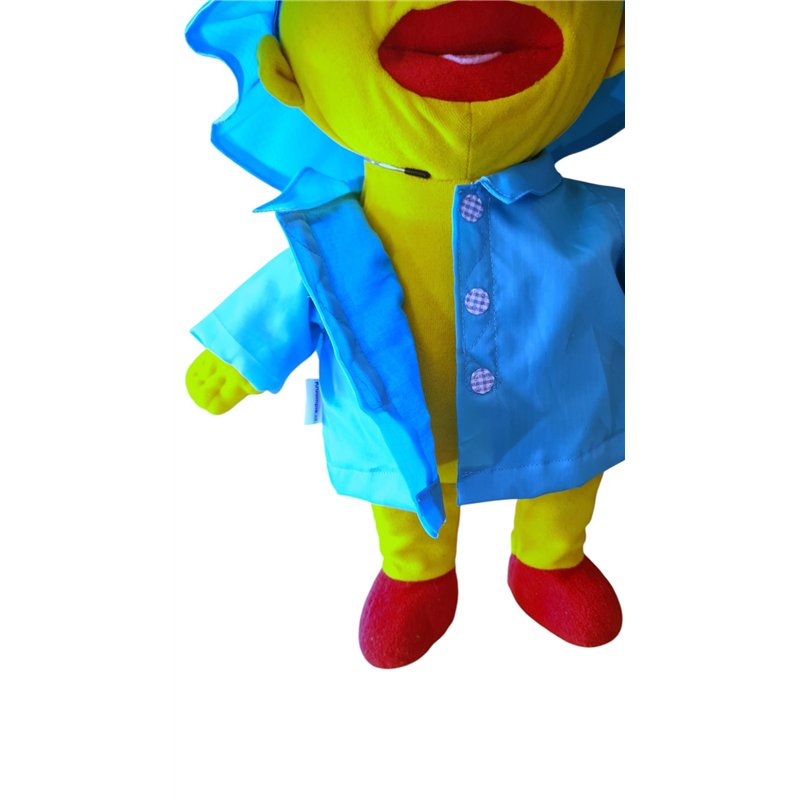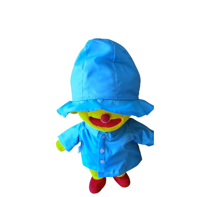 Gevoerde regenjas van waterafstotende stof.Turqoise. Met kraagje en klitteband voorsluiting met stoffen "knoopjes". Zuidwester pet . Geheel gevoerd! Excl. Pop!( overige kleding accesoires apart verkrijgbaar!)