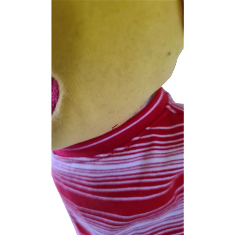 Shirt van tricot met aangeknipte korte mouwen. Halsboordje en klittenband achtersluiting. Bijpassend mutsje met apart aangestikte dubbele rand. ( overige kleding accesoires apart verkrijgbaar!)