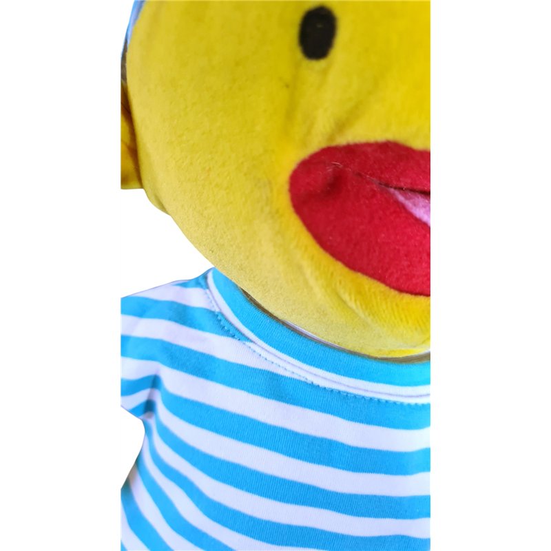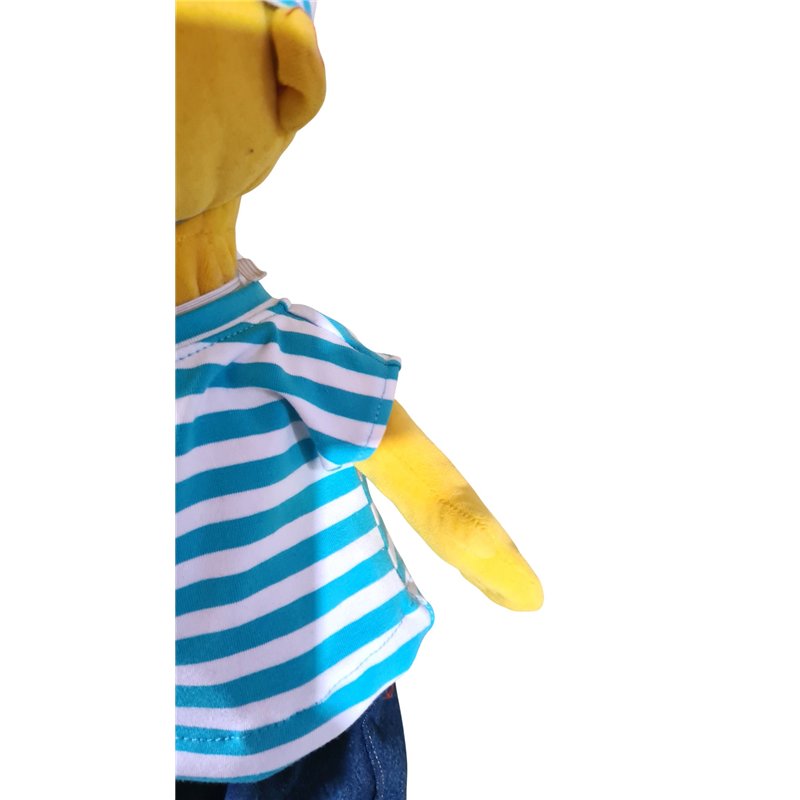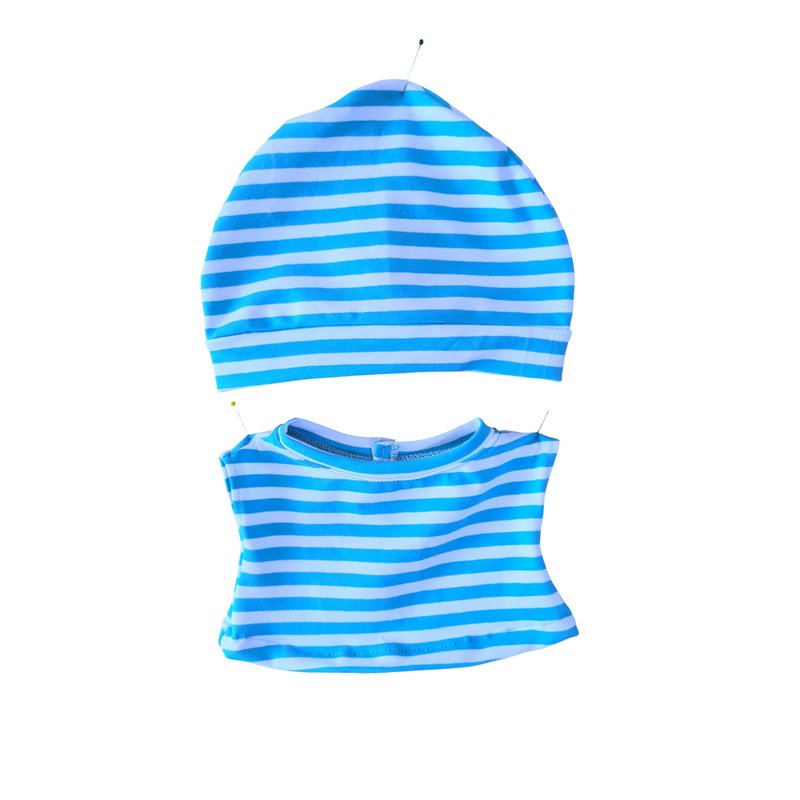 Shirt van tricot met aangeknipte korte mouwen. Halsboordje en klittenband achtersluiting. Bijpassend mutsje met apart aangestikte dubbele rand. ( overige kleding accesoires apart verkrijgbaar!)