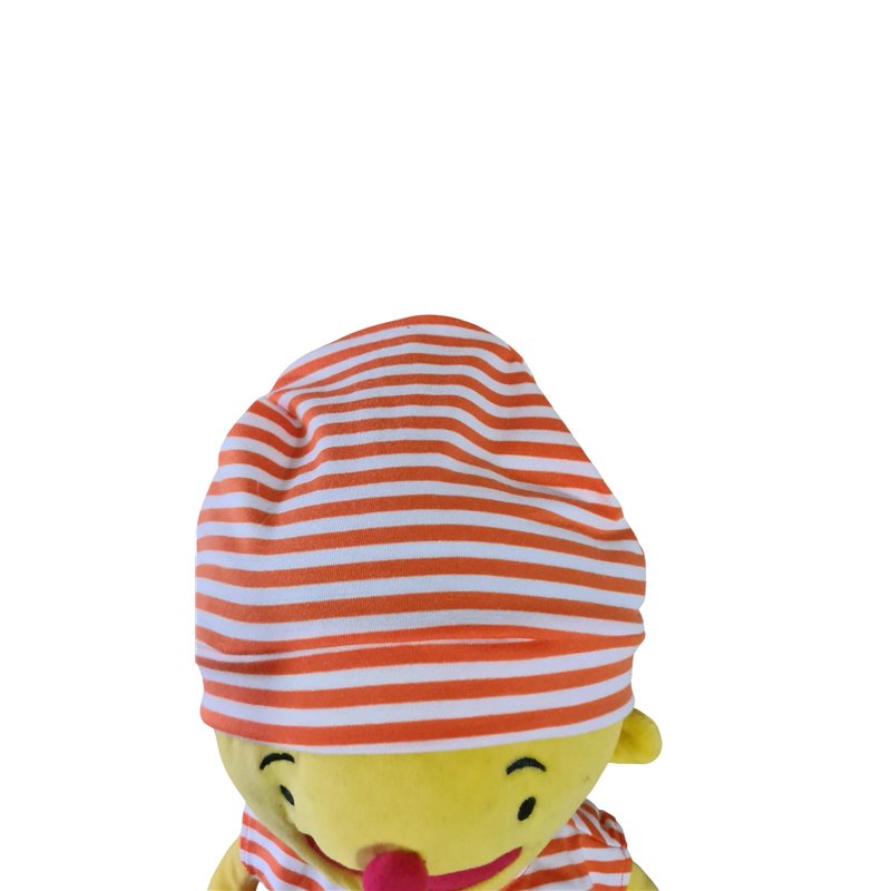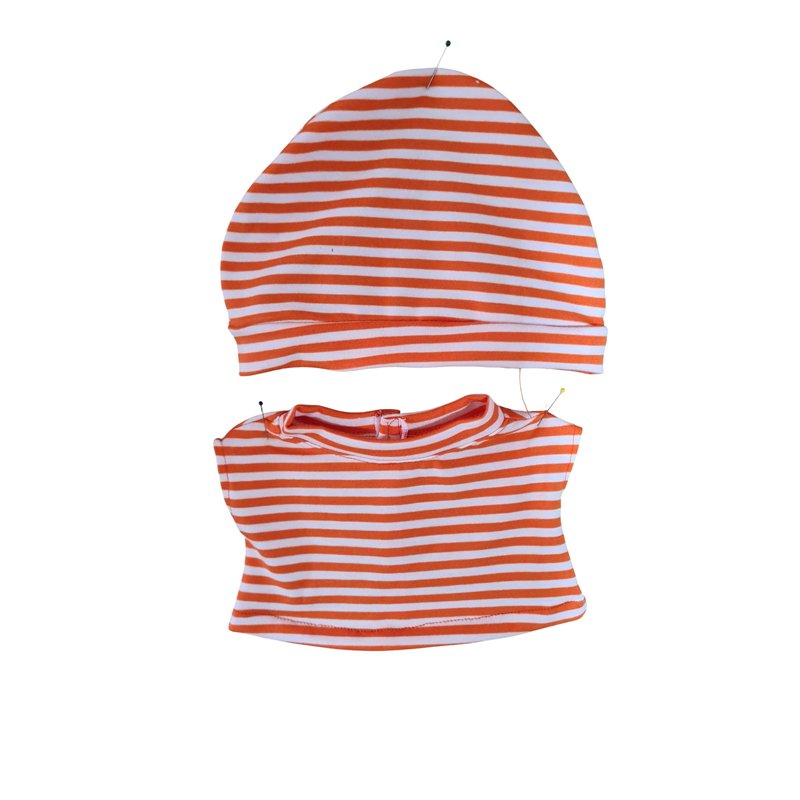 Shirt van tricot met aangeknipte korte mouwen. Halsboordje en klittenband achtersluiting. Bijpassend mutsje met apart aangestikte dubbele rand. ( overige kleding accesoires apart verkrijgbaar!)