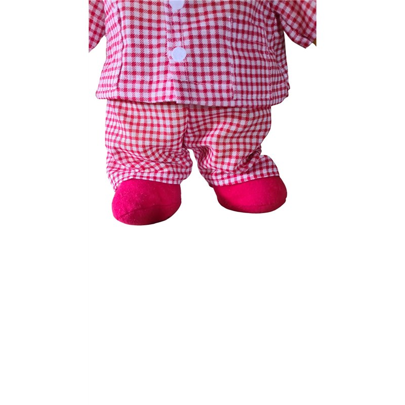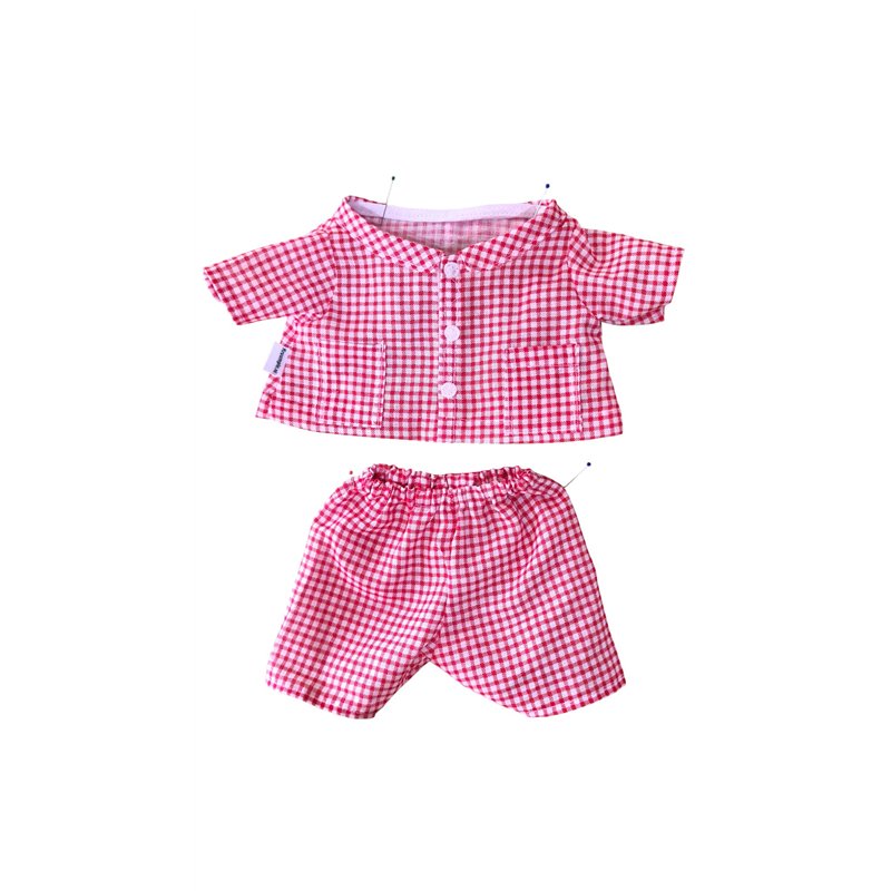 2 dlg pyjama. Bestaande uit top in rood wit bb ruitje met lange mouwen, 2 zakken op voorpand en kraagje. Sluit voor met klittenband en witte stoffen "knoopjes" Lange pyjamabroek in rood wit bb ruitje met elastische taiileband.Excl. Pop!( overige kleding accesoires apart verkrijgbaar!)