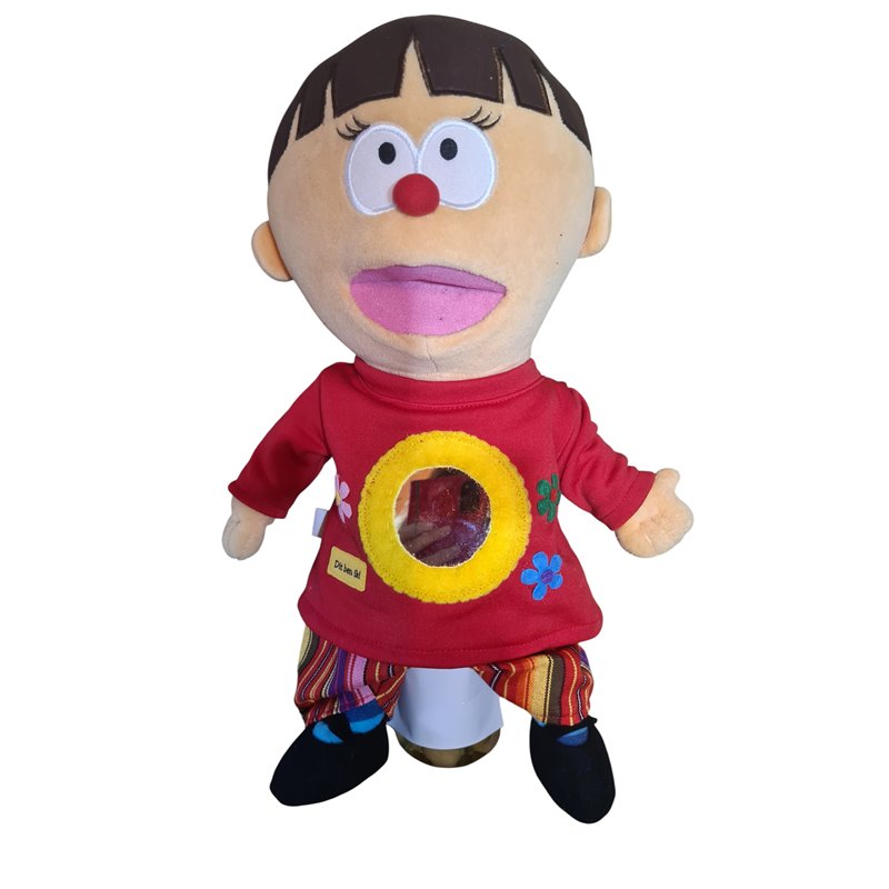 "Top met lange mouwen , halsboordje en klittenband achtersluiting.Echt spiegeltje , omrand met vilt ( kleur kan varieren!) en bloemetjes op voorpand.Lange broek met fake gulp en elastische taiileband Excl. Pop!( overige kleding accesoires apart verkrijgbaar!)